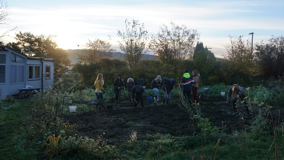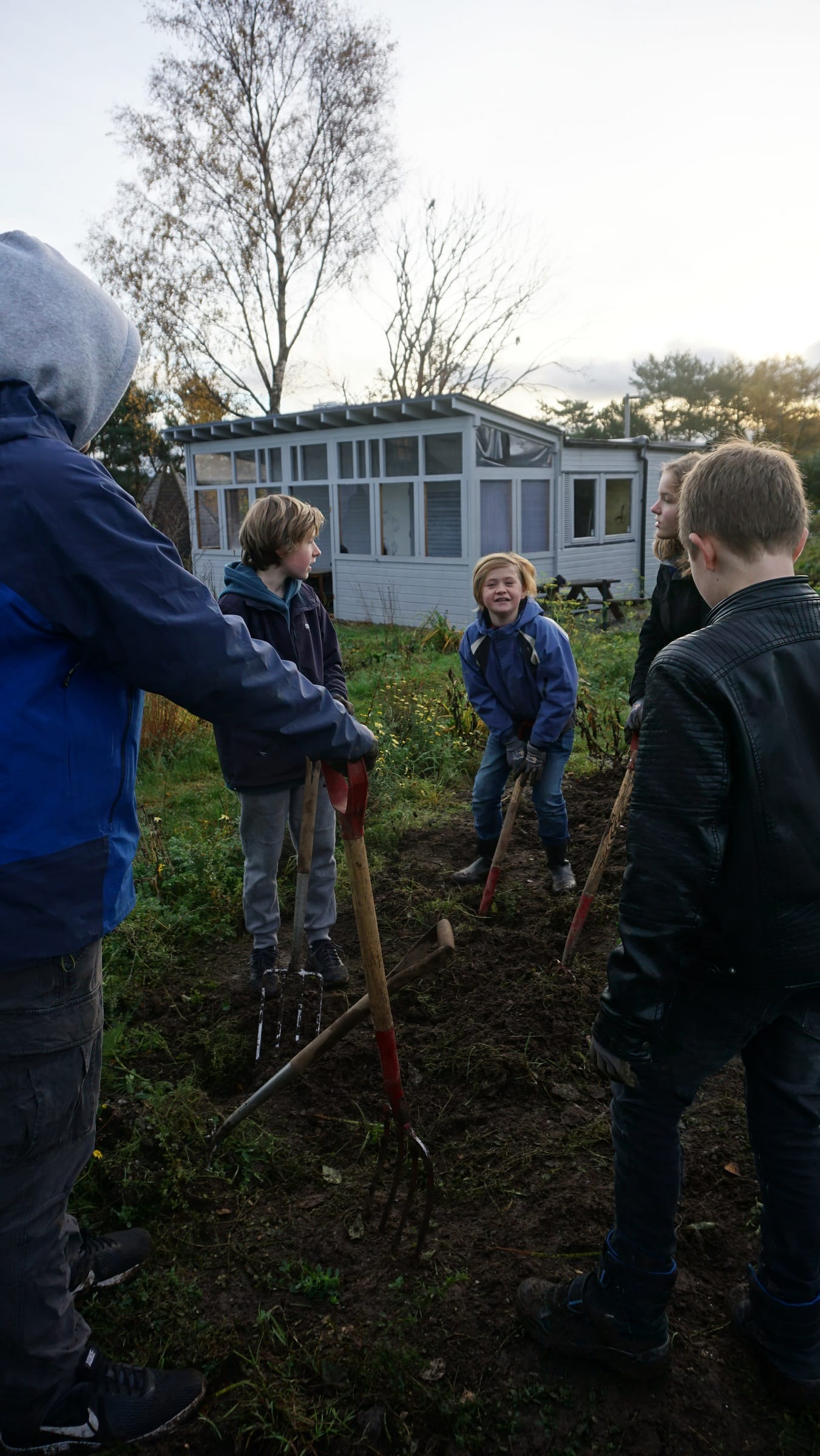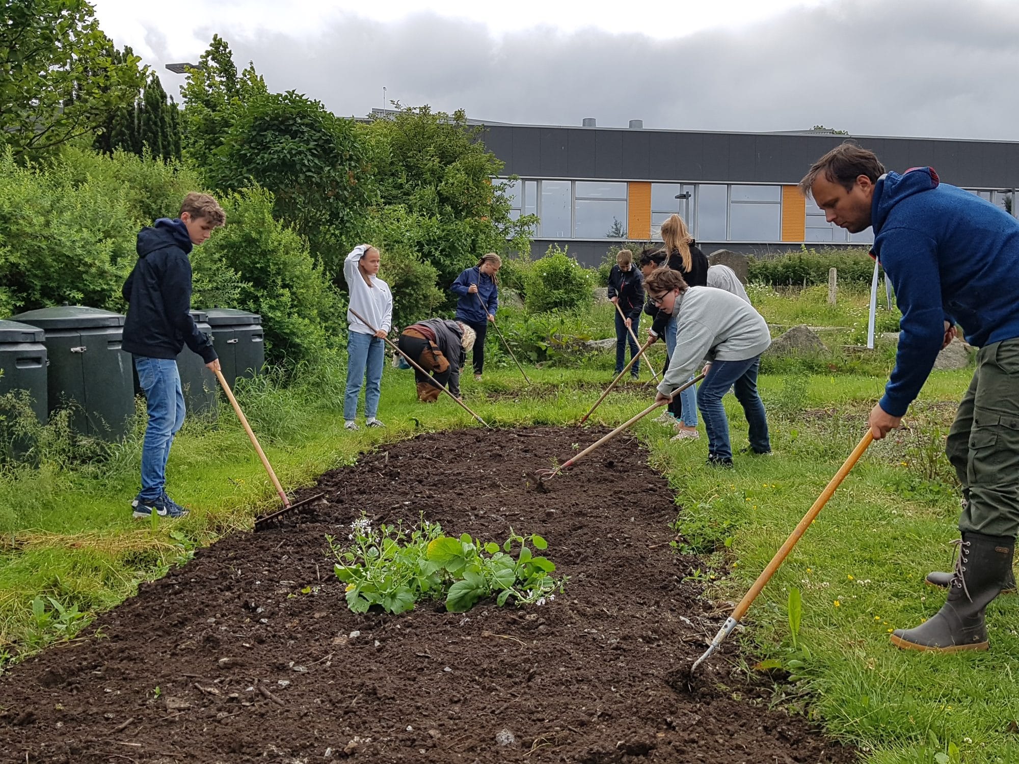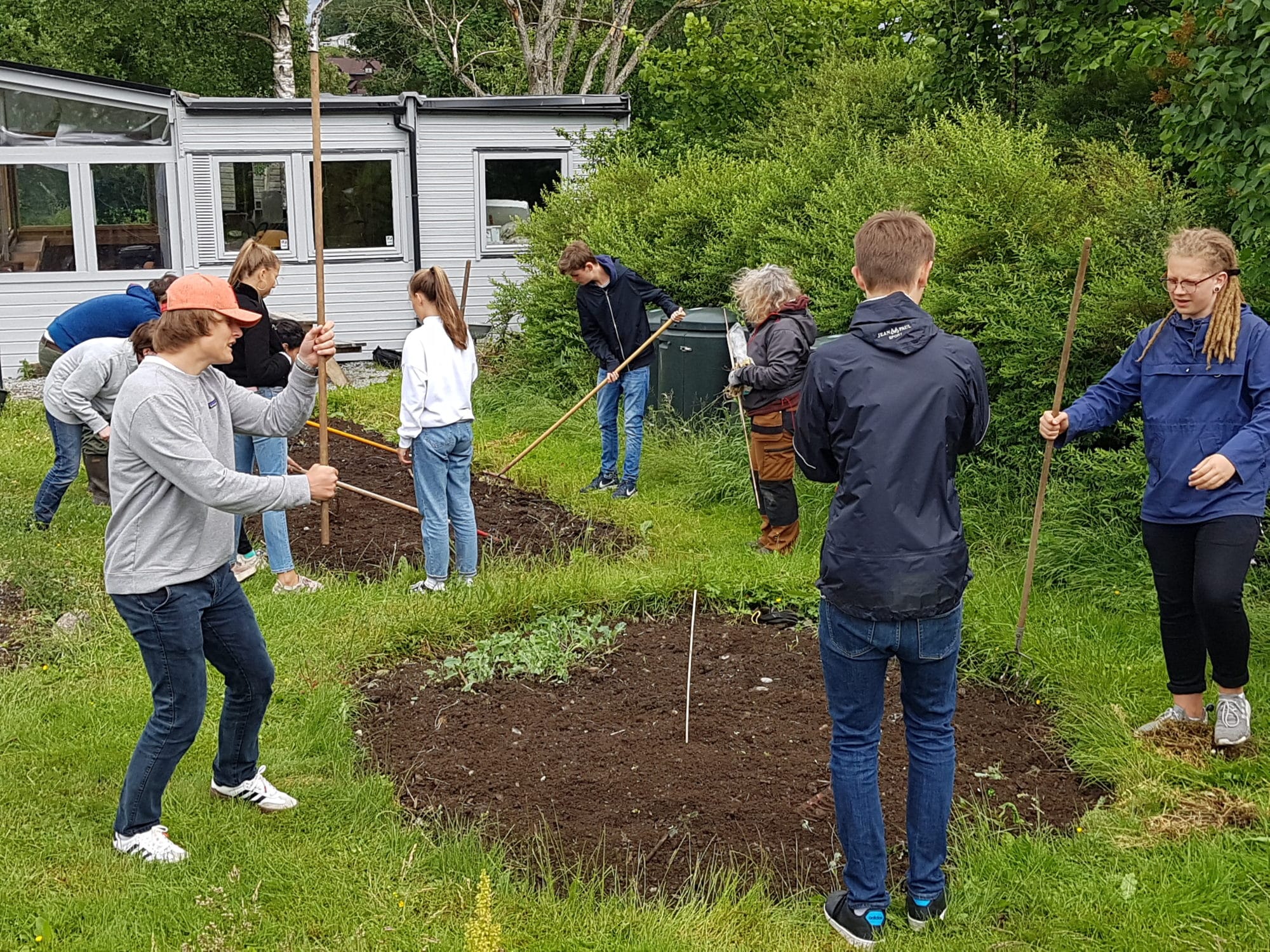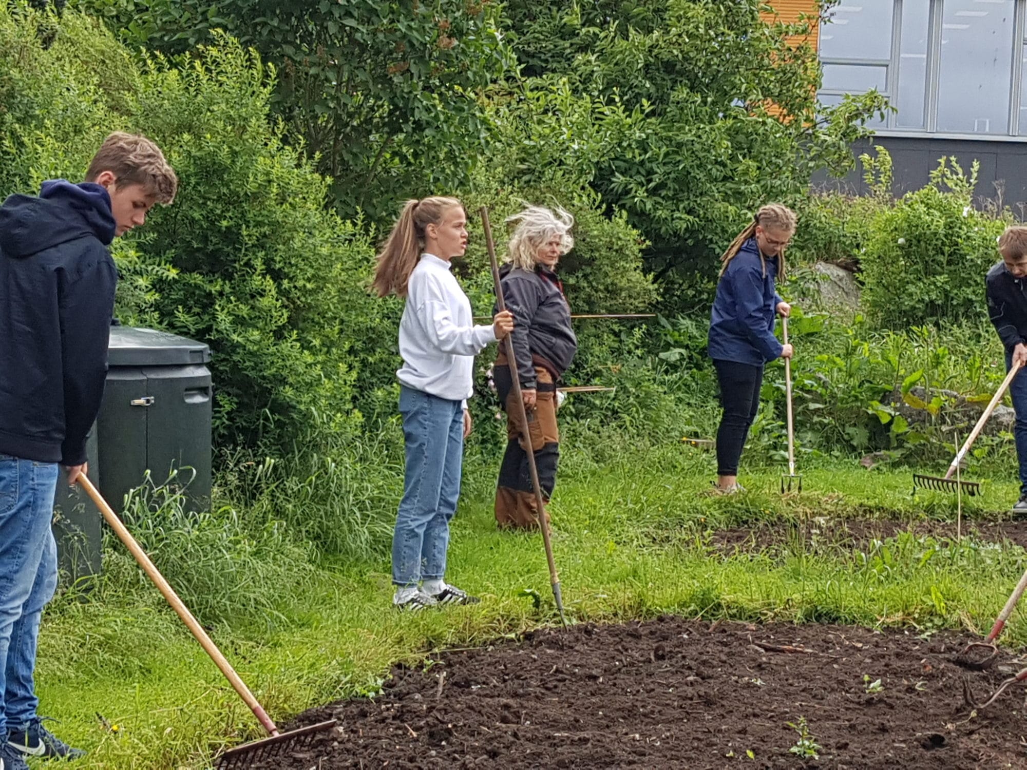 BILDER FRA EN TO UKERS PERIODE MED 8. KLASSE HVOR ELEVENE LÆRTE Å LAGE KOMPOST OG SKAPTE LANDSKAPSKUNST: